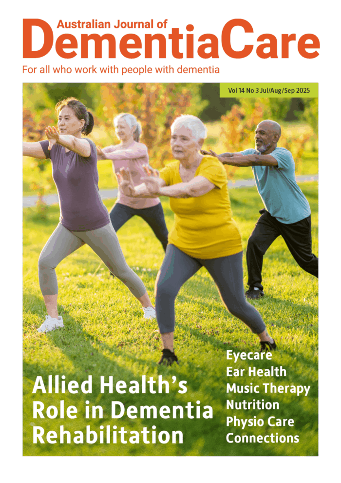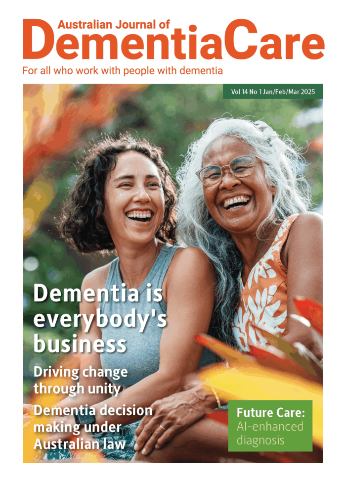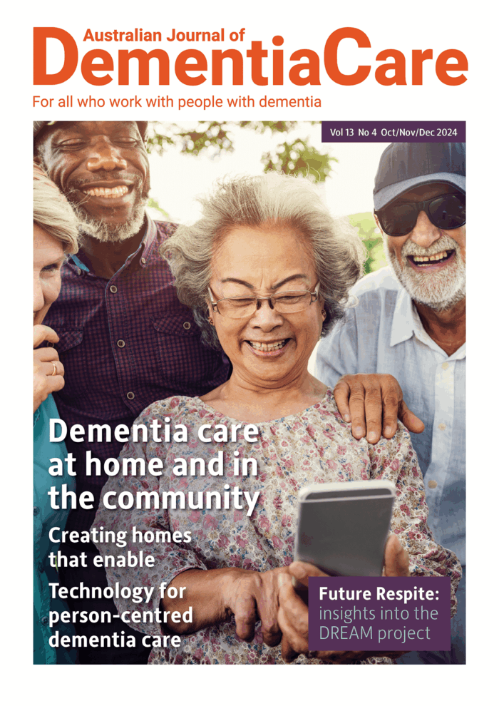 The Australian Journal of Dementia Care (AJDC) is a multidisciplinary journal for all professional staff working with people with dementia in residential aged care homes, hospitals, day units and the community.